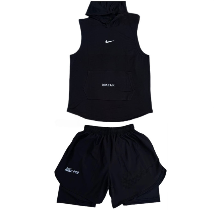 خرید ست رکابی کلاهدار شلوارک کشاله دار مشکی نایک اسپرت ورزشی