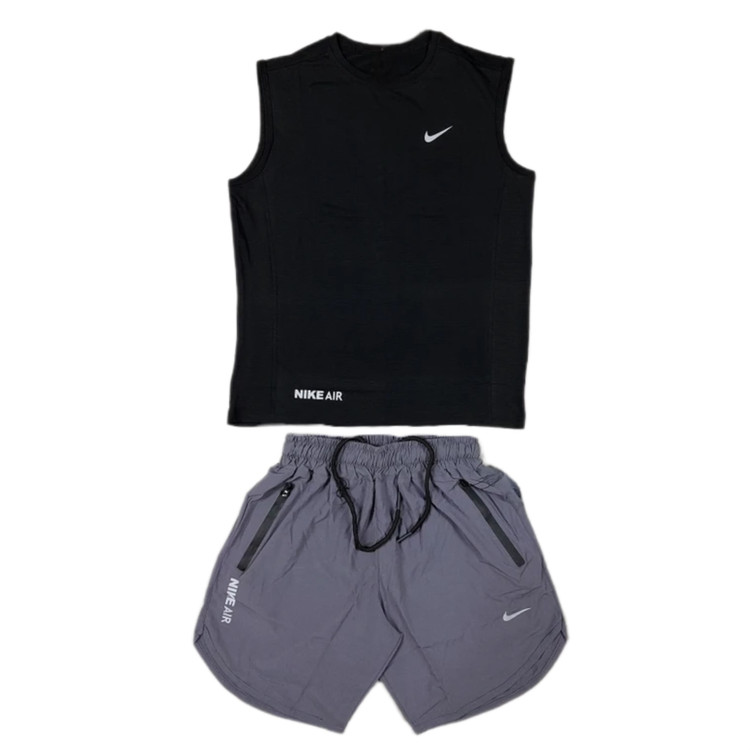 خرید ست رکابی مشکی شلوارک طوسی نایک اسپرت ورزشی