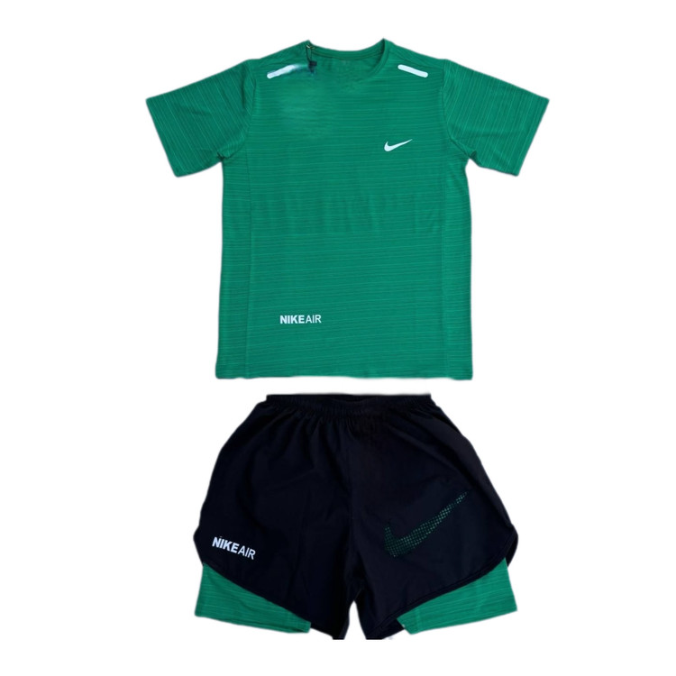 ست تیشرت شلوارک کشاله دار نایک سبزتیره