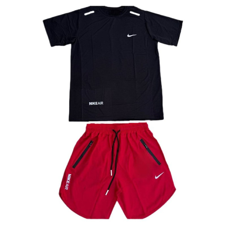 ست تیشرت مشکی شلوارک قرمز نایک