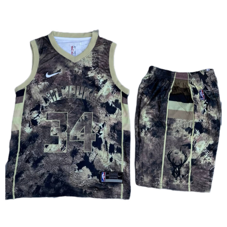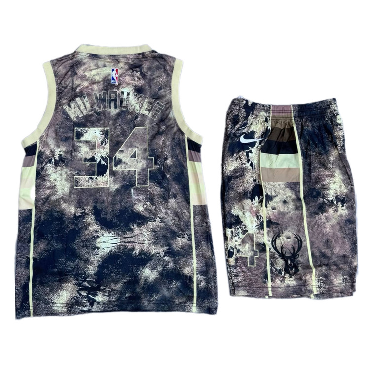 ست رکابی شلوارک بسکتبالی کرم مشکی میلواکی Milwaukee