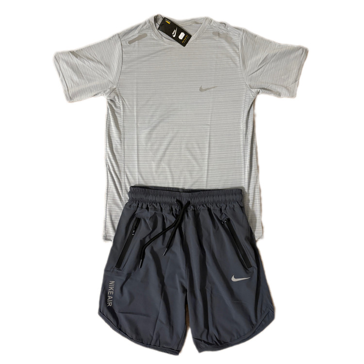ست تیشرت طوسی روشن شلوارک طوسی تیره نایک