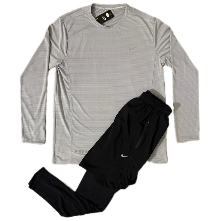ست تیشرت آستین بلند طوسی روشن شلوارک لگدار مشکی نایک